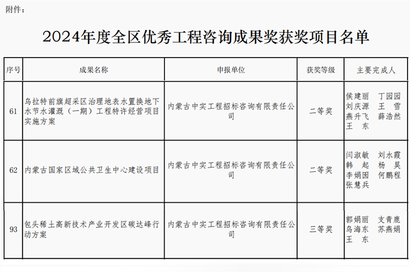 2025年4月16日,内蒙古工程咨询协会公布了2024年度优秀咨询成果奖获奖单位名单,我司取得两个二等奖和一个三等奖,我司专业能力和服务质量再次获得行业的认可。此次获奖,不仅体…